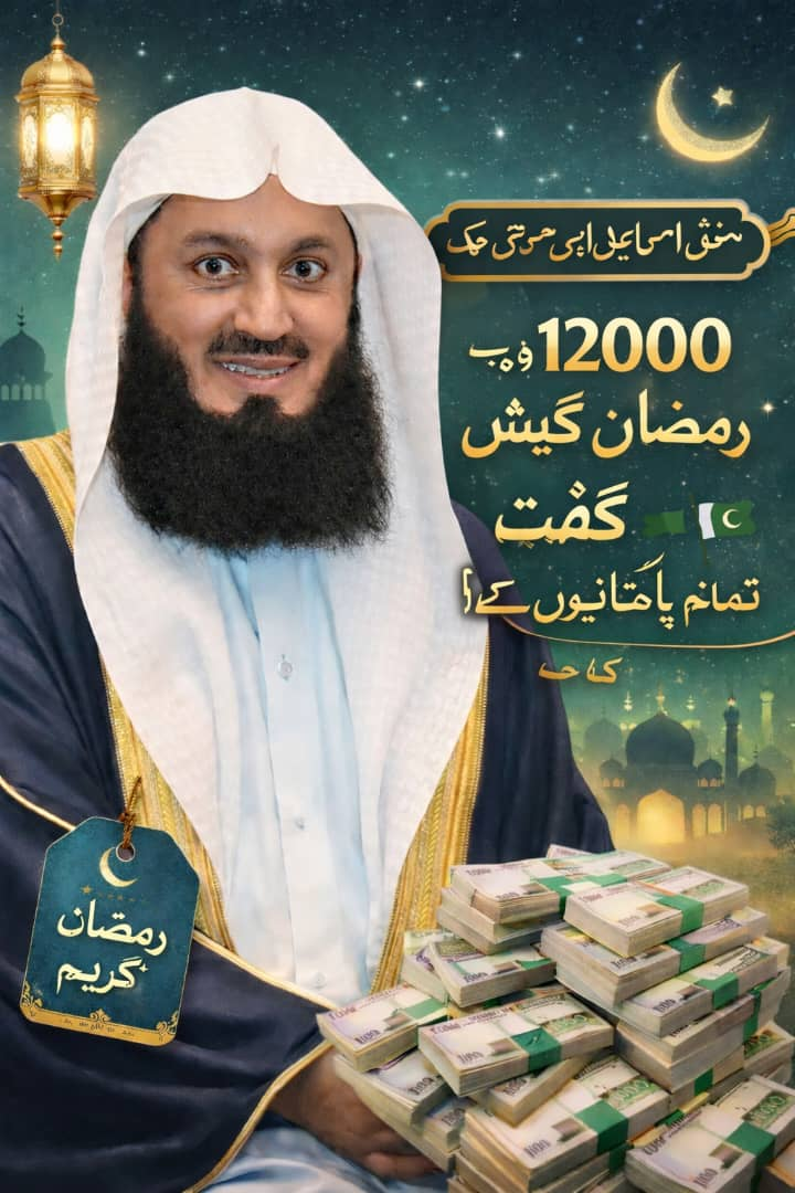اپنی رمضان انسانی ہمدردی کی رسائی کے ایک حصے کے طور پر مفتی اسماعیل ابن موسی مینک رمضان کے مقدس مہینے میں پاکستانیوں کو فلاح و بہبود اور کمیونٹی کو بااختیار بنانے کے لیے 12000 روپے کی نقد امداد فراہم کر رہے ہیں۔